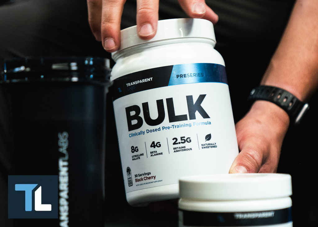 Preparation before the workout is key, and having a high-quality pre-workout during a lean bulk can be a game changer. If you are looking for one to help provide sustained energy, consider Transparent Labs Bulk Black. This formula features evidence-based ergogenic ingredients like citrulline malate, caffeine, beta-alanine, betaine anhydrous, and Alpha-GPC to facilitate strength, recovery, and muscle pumps when you're cranking out reps.